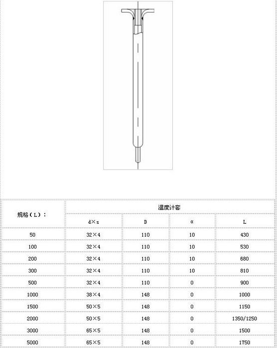 搪玻璃温度计套管兼做挡板相信对于经常使用搪玻璃反应釜设备的您不陌生。温度计套管顾名思义是反应釜设备用来测量内部物料即时反应温度的装置。一般配置在锚式或框式搪玻璃搅拌器上面,也可以配置在桨式或叶轮式搅拌器上面,其公称压力为0.6MPa和1.0MPa,介质温度一般为-20℃~200℃。
